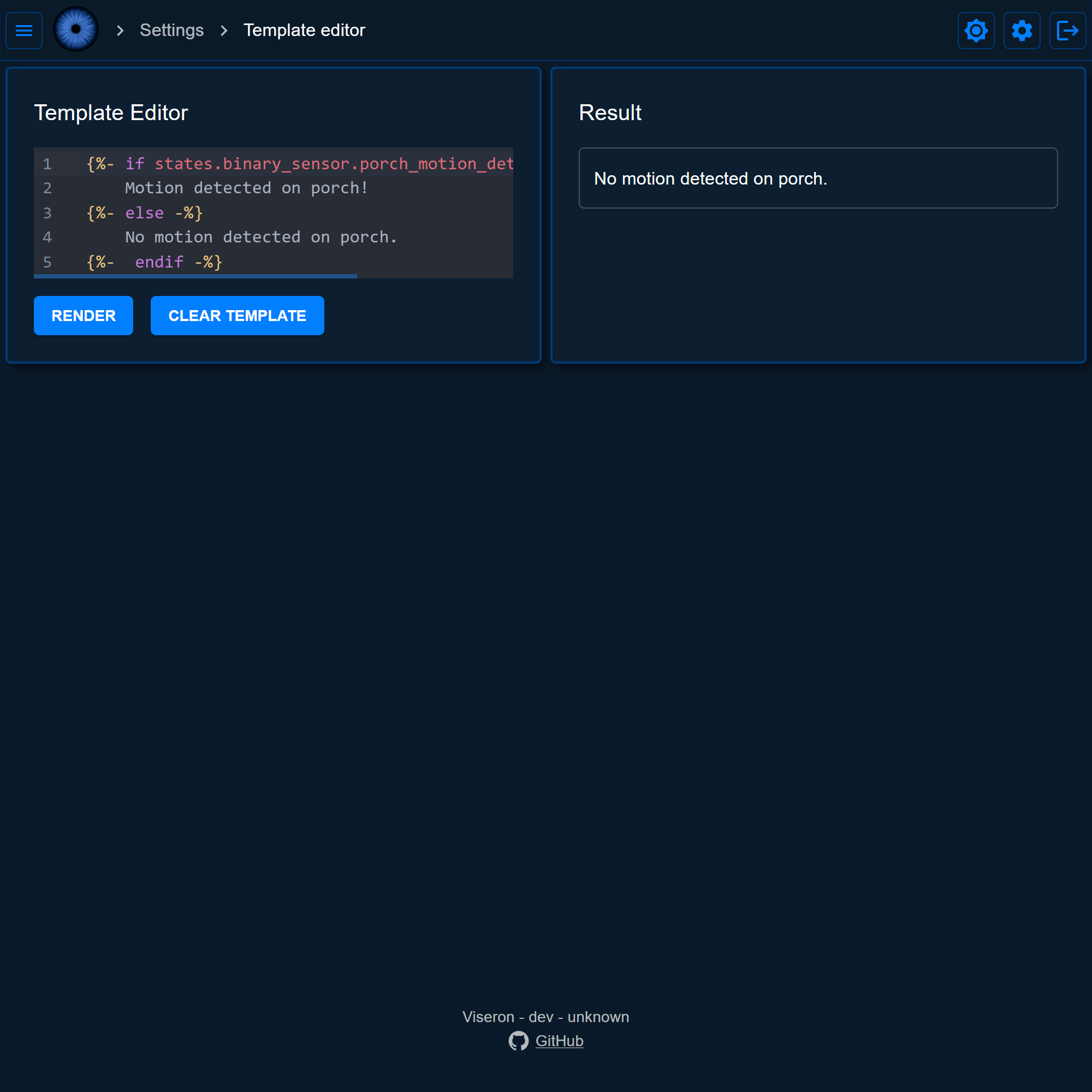 A template editor (heavily inspired by Home Assistant) is available that allows you to test your templates before using them in your configuration. You can access it from the Settings > Template Editor page in the web interface.